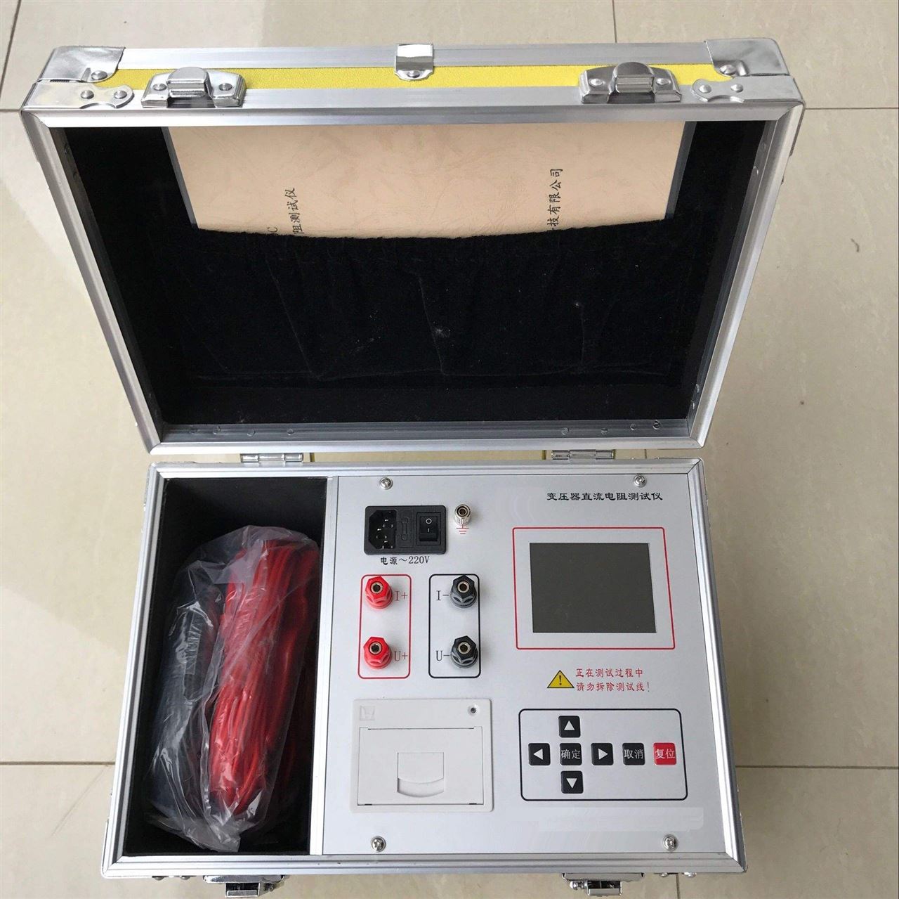 3.測試結束后,按"復位"鍵,一定要等放電指示燈熄滅,提示信息消失后再關掉電源,進行拆線。