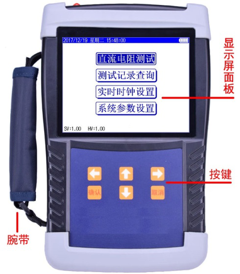 5.6寸超大工業級高亮度彩色液晶屏,顯示操作菜單和測試結果。 |