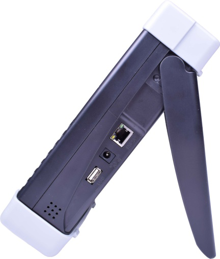 為了在操作期間方便拿取儀器或露出側面接口,可使手持式測試儀傾斜,如下圖所示。