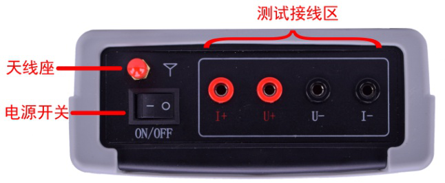 紅、黑兩色接線座,分別對應I+、U+、U-、I-,測試線另一端有紅、黑兩色測試鉗,對應接被測試品。 |