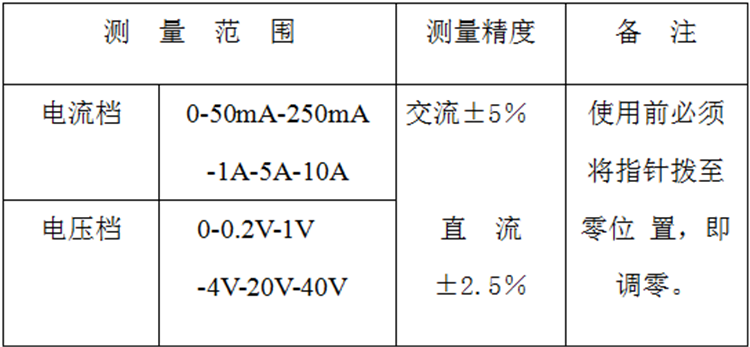 5、測量雜散電壓值時,其檔位是: 50mA對應0.2V、250mA對應1V、1A對應4V、5A對應20V、10A對應40V。(即電流值乘4就是電壓值)