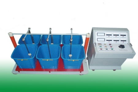 絕緣靴耐壓裝置配套使用方法 1.使用前先將水電阻內注水(出廠時水電阻是空的,注水時不要注得太滿,淹沒電極即可),注滿水的水電阻安裝在移動托架上,再將電極桿支撐兩端插入絕緣撐桿和水電阻內。 2. 將水槽注水(水槽整個三分之二),被試品注水,絕緣靴(手套)內外盛水呈相同高度,應有90mm的露出水面部分,并確保絕緣靴(手套)露出...